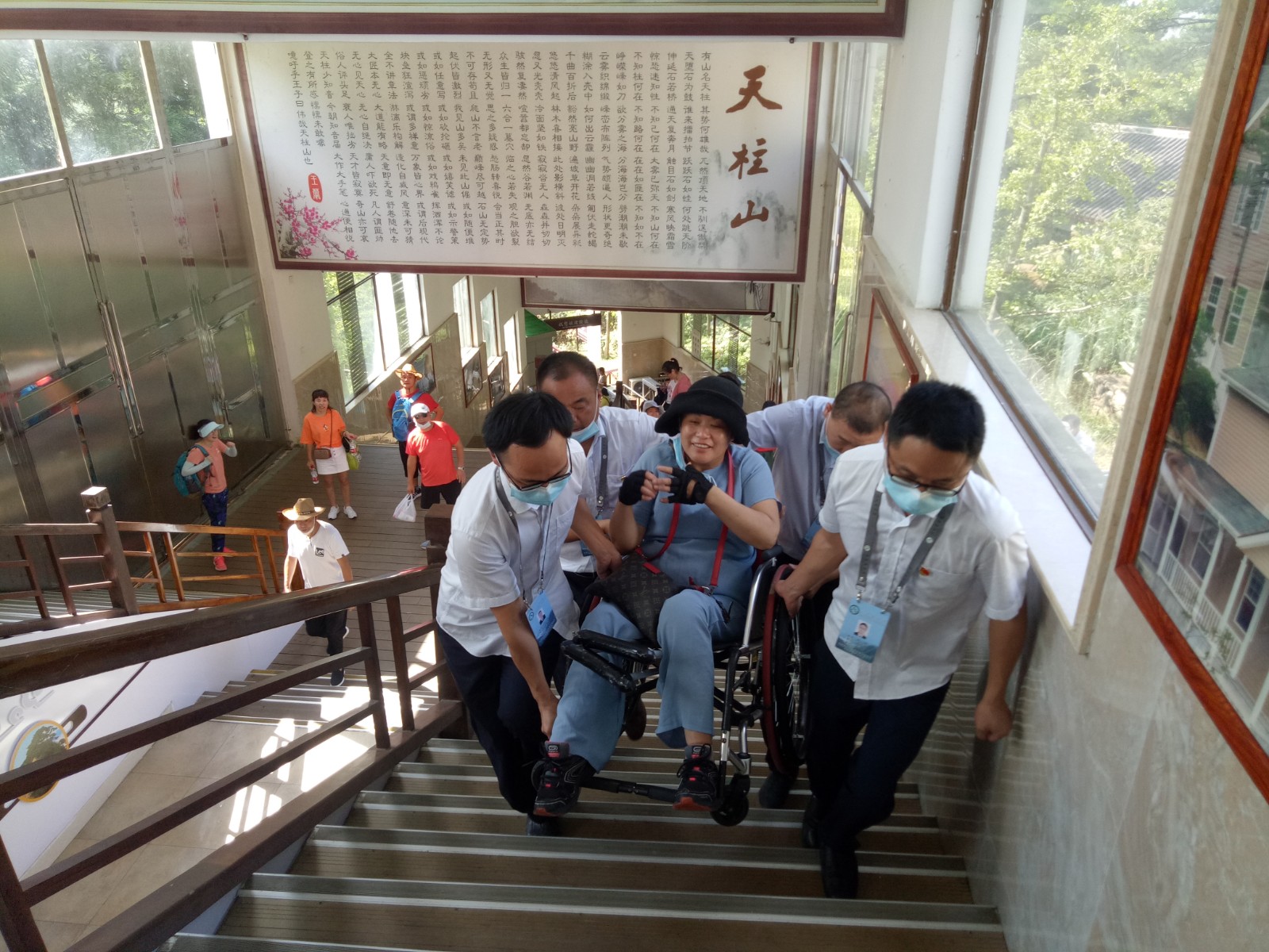 “天柱山很美,景區(qū)服務(wù)很周到,為索道工作人員的貼心服務(wù)點(diǎn)贊”。8月16日,天柱山風(fēng)景區(qū)迎來了一批特殊的游客,為了讓這批殘疾人士一睹天柱山的美麗風(fēng)景,大龍窩索道和執(zhí)法大隊(duì)一中隊(duì)及時抽調(diào)黨員骨干,組成10余人的愛心志愿者分隊(duì),全程陪同一對一的為他們貼心服務(wù),志愿者們采取了背、抱、扶的辦法,為殘疾人士實(shí)現(xiàn)了無障礙通行,檢票口開通了綠色檢票通道,站臺服務(wù)細(xì)致入微,使得這批特殊的游客感受到了來自景區(qū)的溫暖,圓了他們的登山夢,大龍窩索道正在用實(shí)際行動踐行著“大愛天柱,情系天下”的服務(wù)宗旨。(文圖/李平)
