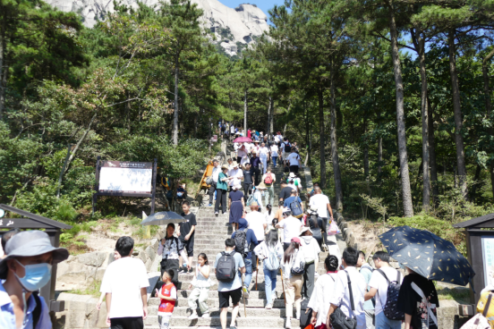 10月5號,國慶假期第五天,陽光正好,微風(fēng)不燥。國慶假期已過半,但是大家的旅游熱情并沒有減退,天柱山接待游客量基本保持平穩(wěn)。
