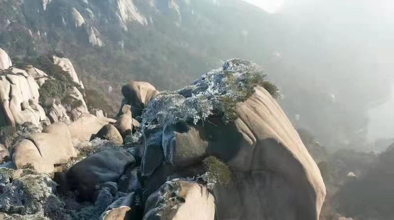 山脊上銀裝素裹,被雪花包裹著的松針猶如海里的珊瑚,在陽(yáng)光的照射下色彩斑斕、美輪美奐。山谷間云霧繚繞,石如珠玉變幻萬千,猶如瑤池仙境,美不勝收。