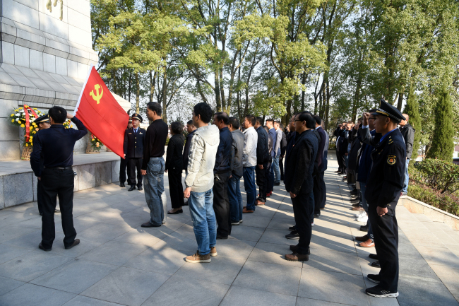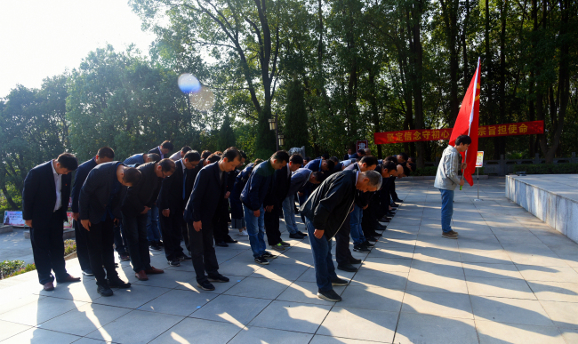 上午9時,全體人員整齊列隊,緩步走進革命烈士陵園,向革命烈士紀念碑敬獻花籃,在莊嚴肅穆的紀念碑前肅立默哀,并向烈士紀念碑三鞠躬。全體黨員面向鮮紅的黨旗,莊嚴地舉起右手進行入黨宣誓,表達了不忘初心、牢記使命的政治信念,表達了為黨的事業(yè)奮斗終身的決心和愿望。