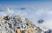 特色: 霧凇非冰非雪,而是由于霧中無數(shù)零攝氏度以下而尚未凝華的水蒸氣隨風在樹枝上不斷積聚凍粘的結果,表現(xiàn)為白色不透明的粒狀結構沉積物。霧凇形成需要氣溫很低,而且水汽又很充分,同時能具備這兩個形成霧凇的極重要而又相互矛盾的自然條件更是難得。霧松具有“美、媚、柔、透”等特點,極具觀賞性。她全方位、大面積覆蓋,裝點著天柱山的樹木、山峰、巖石、大地。風一吹來,掛著霧凇的樹...